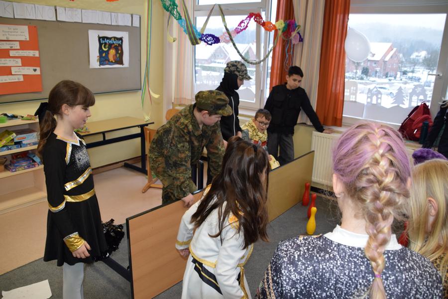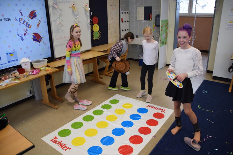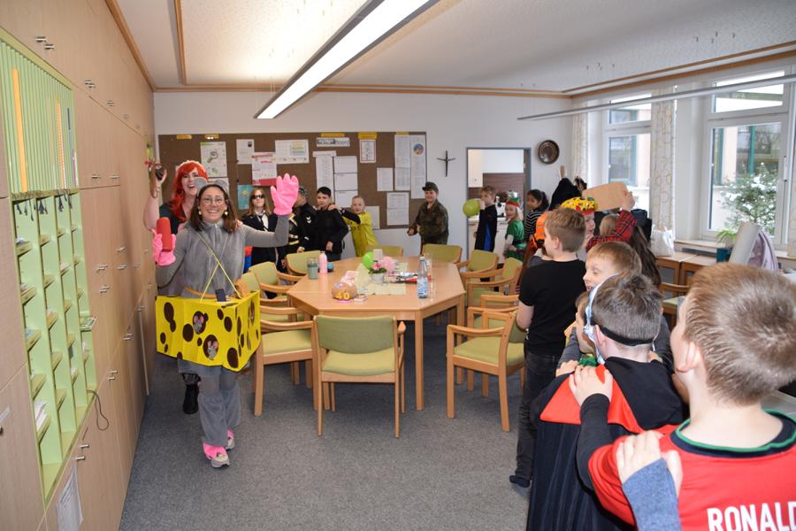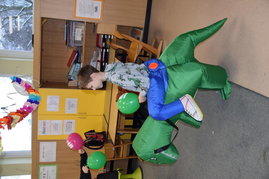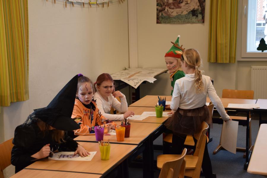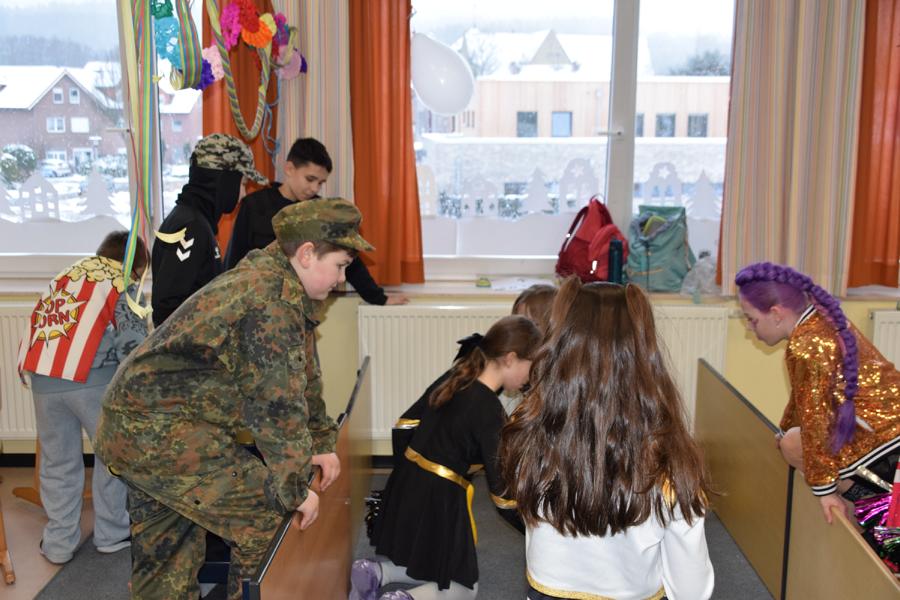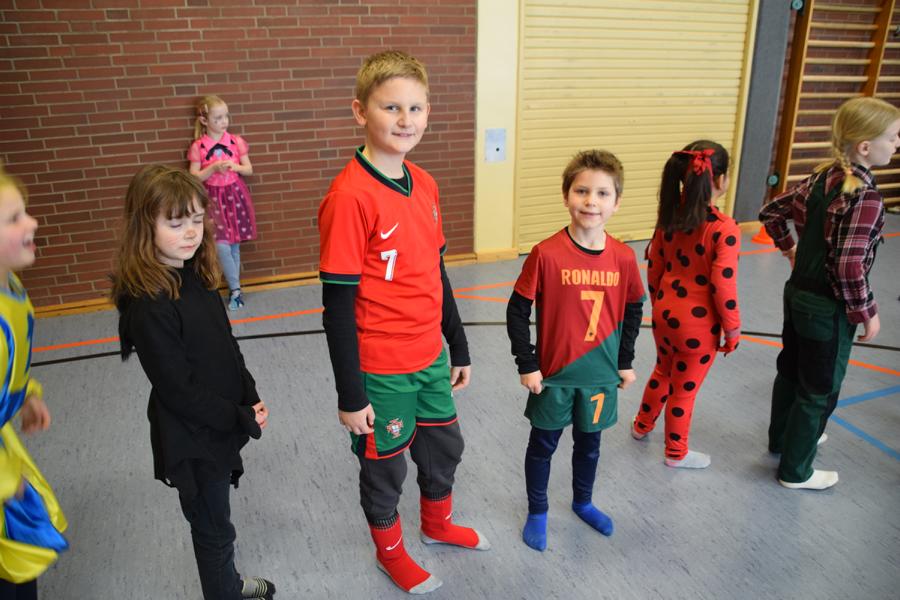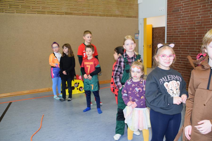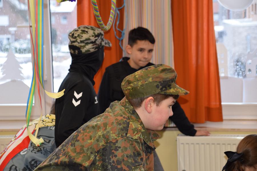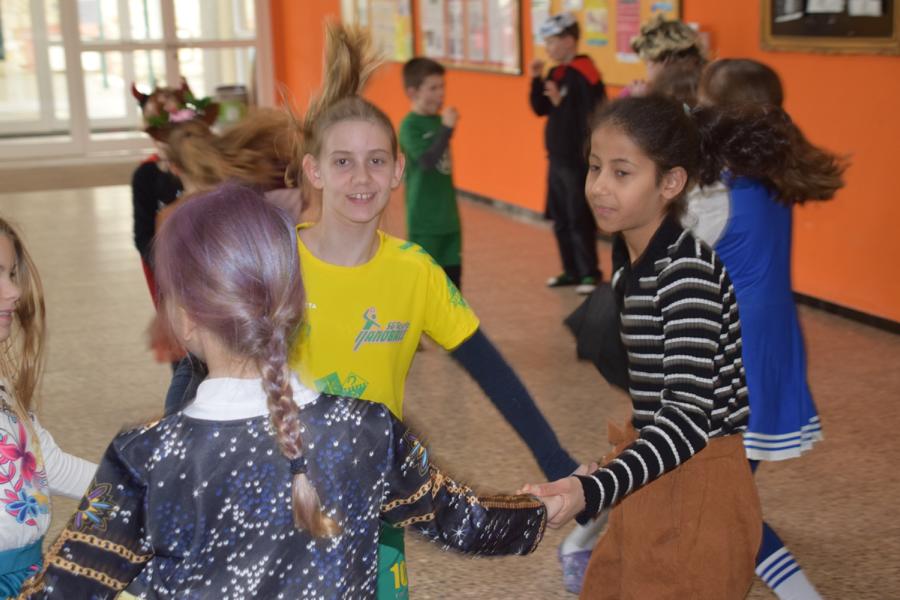 Auch in Natrup-Hagen wurde am Rosenmontag wieder kräftig gefeiert. Ob Prinzessin oder Astronaut, Clown, Cheerleader, Blumentopf oder Polizist - Kinder und Lehrkräfte kamen in wunderbar bunten und vielfältigen Kostümen und brachten gute Feierlaune mit. In den ersten beiden Stunden feierte jede Klasse für sich. Anschließend durften sich alle am vielfältigen und leckeren Buffet stärken, denn jedes Kind hatte etwas mitgebracht. In der dritten Stunde standen alle Klassenräume offen und jedes Kind durfte nach eigenem Interesse an unterschiedlichen Workshops teilnehmen. Insbesondere der Diskoraum war immer sehr gut besucht. In der vierten Stunde durfte der traditionelle Rosenmontagsumzug durch Natrup-Hagen natürlich nicht fehlen. Ausgestattet mit lauten Rasseln, Tröten und einer Musikbox, zogen alle Natrup-Hagener Kinder mit den Lehrkräften durch ihren Ortsteil. Am Straßenrand hatten sich sogar freundliche Fans versammelt (Eltern und Großeltern), die netterweise Süßigkeiten verteilten. Bestens gelaunt ging es wieder zurück in die Schule. Solch einen Schultag hätten die Kinder sicherlich gern häufiger!