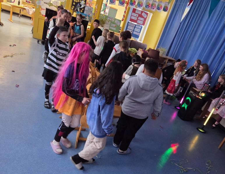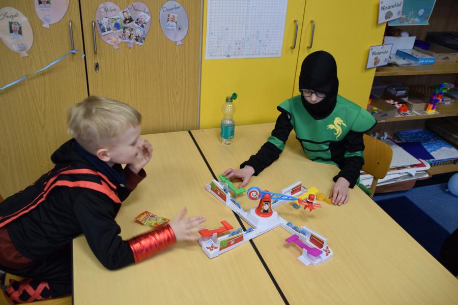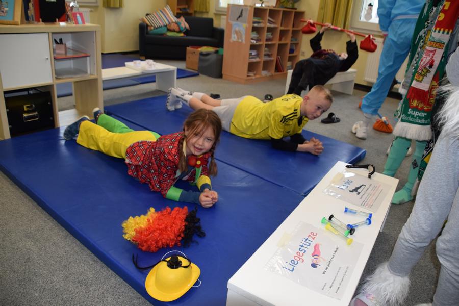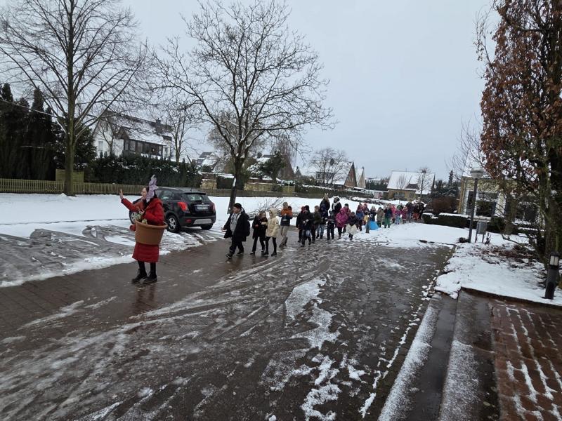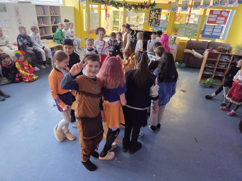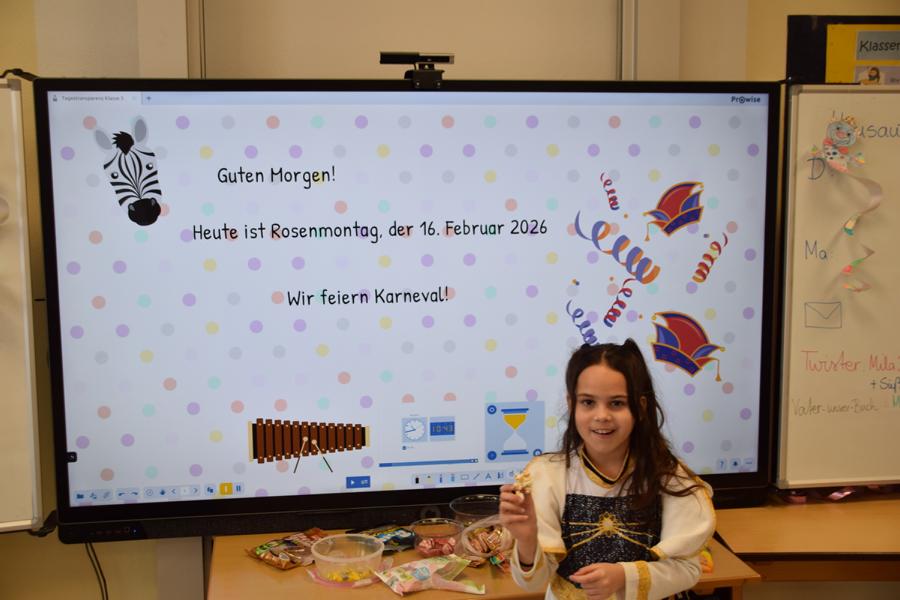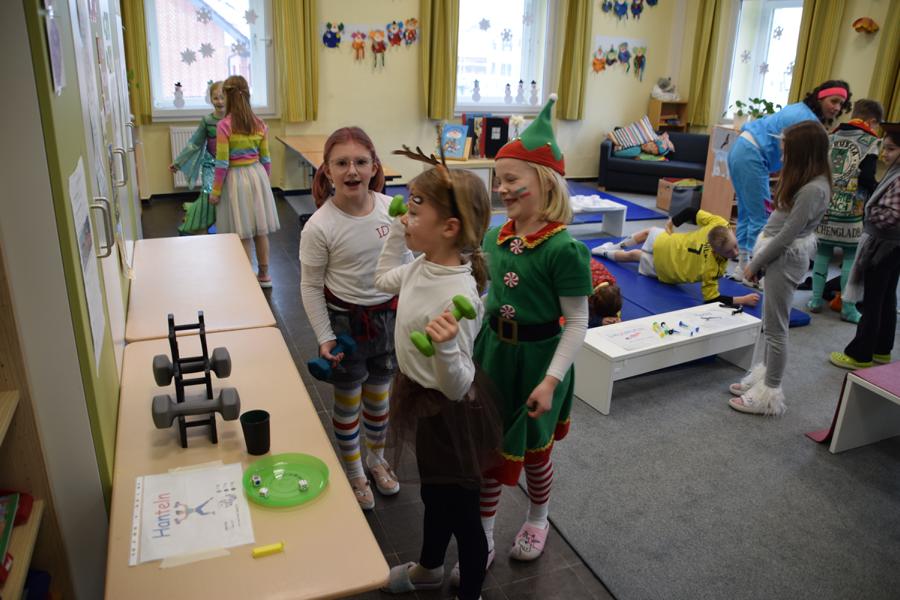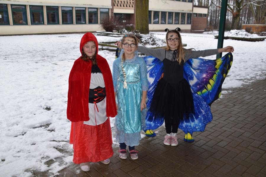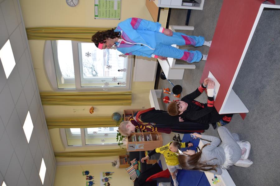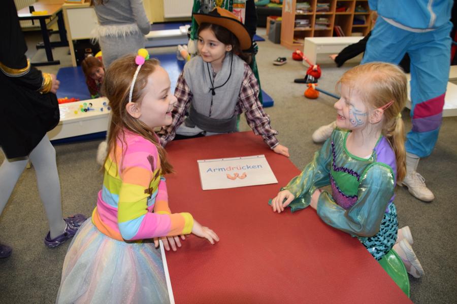 Auch in Natrup-Hagen wurde am Rosenmontag wieder kräftig gefeiert. Ob Prinzessin oder Astronaut, Clown, Cheerleader, Blumentopf oder Polizist - Kinder und Lehrkräfte kamen in wunderbar bunten und vielfältigen Kostümen und brachten gute Feierlaune mit. In den ersten beiden Stunden feierte jede Klasse für sich. Anschließend durften sich alle am vielfältigen und leckeren Buffet stärken, denn jedes Kind hatte etwas mitgebracht. In der dritten Stunde standen alle Klassenräume offen und jedes Kind durfte nach eigenem Interesse an unterschiedlichen Workshops teilnehmen. Insbesondere der Diskoraum war immer sehr gut besucht. In der vierten Stunde durfte der traditionelle Rosenmontagsumzug durch Natrup-Hagen natürlich nicht fehlen. Ausgestattet mit lauten Rasseln, Tröten und einer Musikbox, zogen alle Natrup-Hagener Kinder mit den Lehrkräften durch ihren Ortsteil. Am Straßenrand hatten sich sogar freundliche Fans versammelt (Eltern und Großeltern), die netterweise Süßigkeiten verteilten. Bestens gelaunt ging es wieder zurück in die Schule. Solch einen Schultag hätten die Kinder sicherlich gern häufiger!
