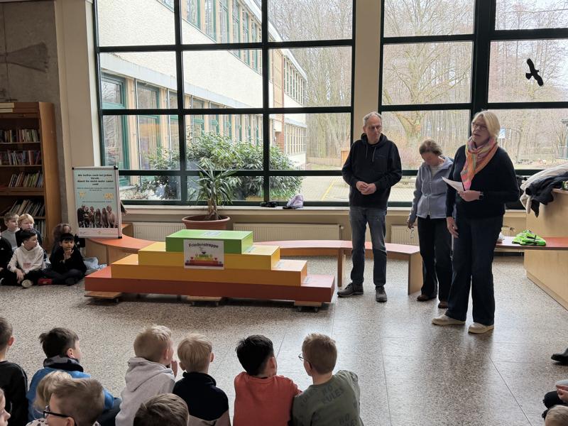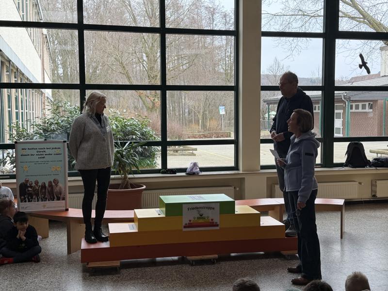 Hilfreich ist, dass an unserer Schule schon das Konzept Friedenstreppe implementiert ist, so dass die Senioren hierauf aufbauen und die Kompentenz der Kinder zur Nutzung der Treppe noch schulen können.
